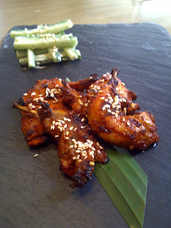 | Grilled quail tandoori with sesame seeds and cucumber with yoghurt |